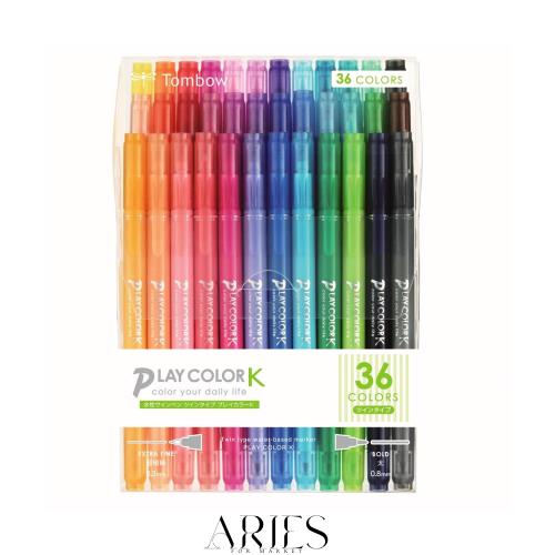 トンボ鉛筆 水性 サインペン 36色 (太&極細ツインタイプ) カラーペン (カワイイカラー満載) プレイカラーK GCF-013