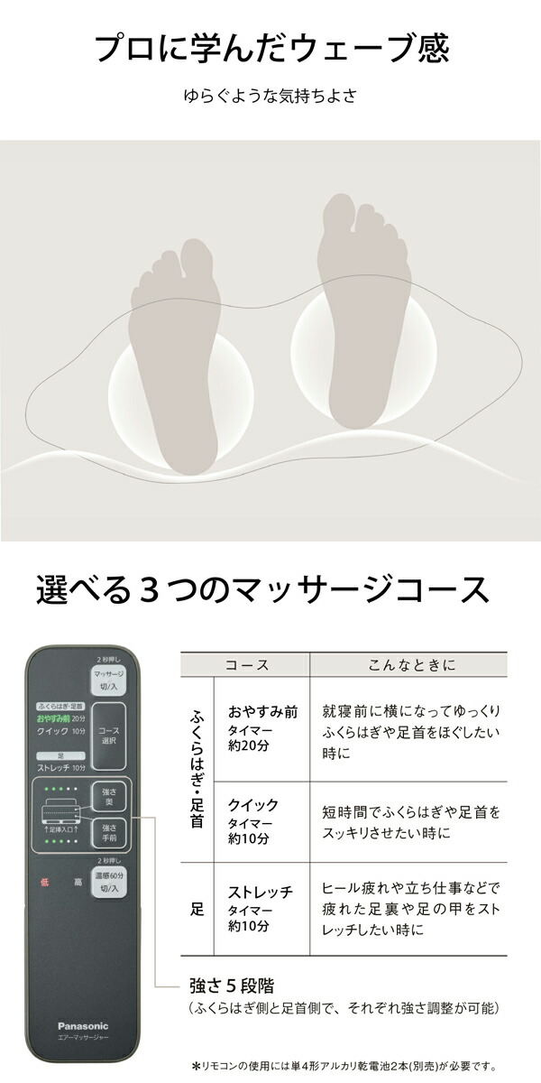 パナソニック エアーマッサージャー ねるまえほっとリフレ EW-RA152-H グレー リラックス 足の疲れ 立ち仕事