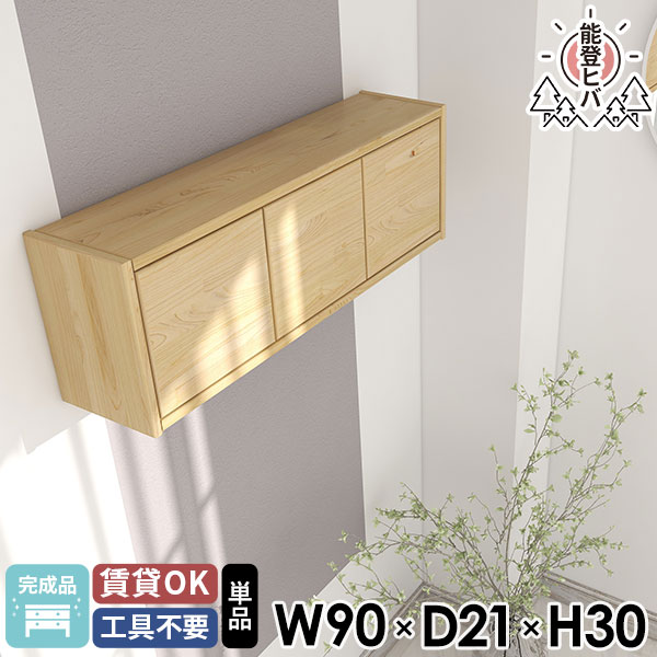 壁掛けラック ウォールボックス 約幅90 完成品 洗面所 キッチンラック 壁掛け棚 北欧 壁につける棚 脱衣所 トイレ棚 ウォールキャビネット 壁に付けられる家具 能登ヒバ 収納棚 天然木 ウォールシェルフ 石膏ボード 吊戸棚 壁面収納 扉付き 木製 ウォールラック ★