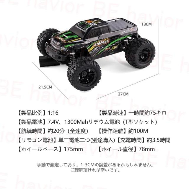 ラジコンカー 1:16 RCカー リモコン オフロードラジコンカー レーシングカー 2.4GHz 四輪駆動 時速60km 高速走行 走破最高 大出力モーター 全地形対応 防水 誕生日 プレゼント 子供おもちゃ ギフト 贈り物