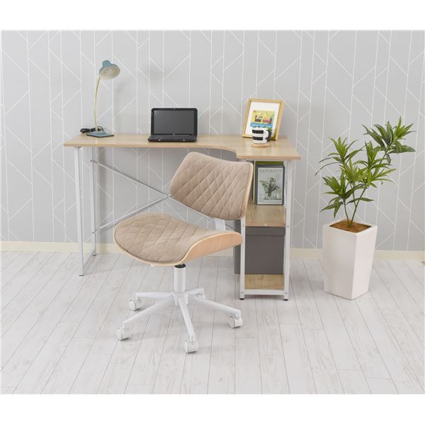 デスク (テーブル 机) チェア (イス 椅子) パーソナルチェア 幅48cm キャスター付 移動可能 車輪付き き 昇降 回転 金属 スチール ファブリック コーデュロイ ベージュ BE お客様組立品 送料無料