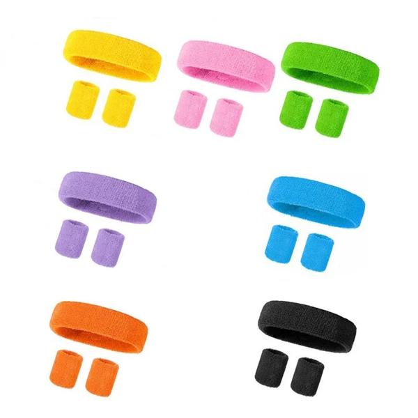 男性と女性のための弾性スポーツヘッドバンド スウェットバンド リストバンド 屋外 ジム ランニング テニス 3個のセット