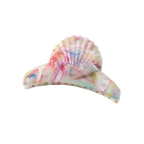 アセテートシェル型ヘアクリップ ビーチスタイリングアクセサリー 海の生き物のサメの爪 ポニーテールクリップ 1個