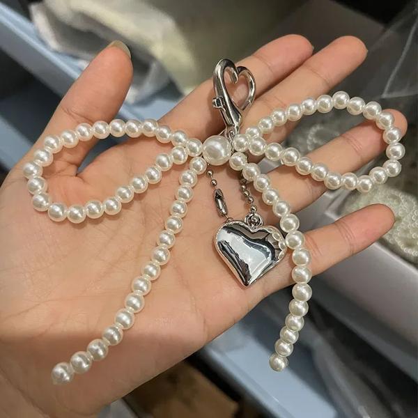パールバックルとパールペンダントの靴 かわいいビーズのバッグ キーホルダー 装飾アクセサリー
