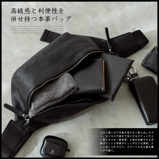 本革/イタリアンレザー ボディバッグ メンズ 本革 横型 革バッグ レザーバッグ 本牛革 ウエストバッグ ダブルファスナー 大容量 小さいサイズ 斜めがけ 軽い 横長 ボディーバッグ nsz-30251n aroco/アロコ 秋冬 秋バッグ 敬老の日 プレゼント新生活