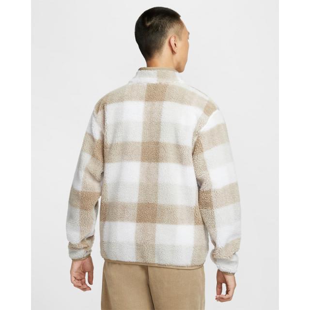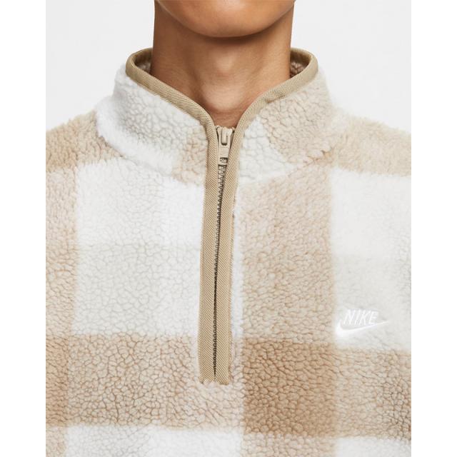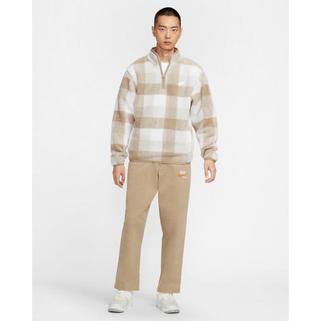 ナイキ フリース プルオーバー メンズ NIKE CLUB ウィンタライズド ハーフジップ 長袖 ルーズ トップス チェック柄 スポーツスタイル メンズウエア 保温 スポーティ カーキ/白 男性 秋冬 服 nike ブランド アパレル/FZ0898-247