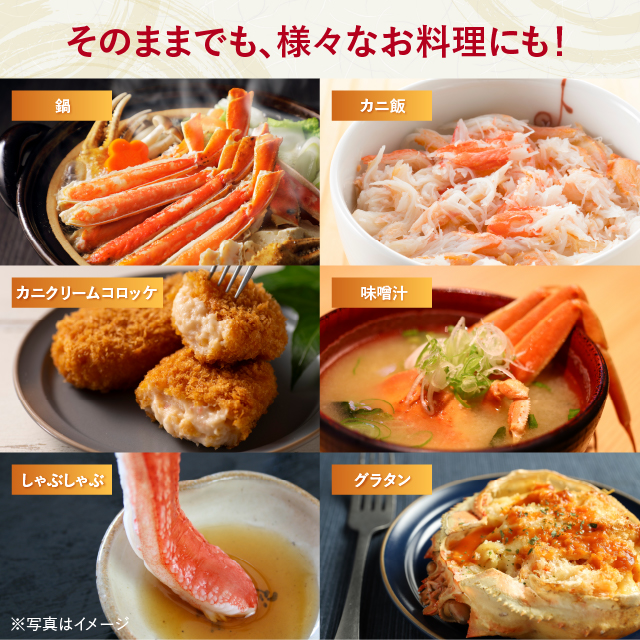 ※カニの胴体にあるエラ(通称ガニ)は可食部ではございません。お召し上がりにならず必ず破棄してください。