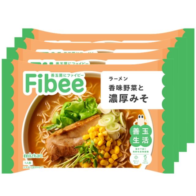 ミツカン Fibee ラーメン 香味野菜と濃厚みそ 4食 [発酵性食物繊維 ゆで時間3分] 食物繊維 全粒粉 無かんすい麺 ファイビー