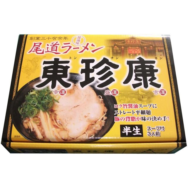 説明 広島県尾道市にあるラーメン店「東珍康」の味がご家庭で簡単に召上れるよう、店主と共同開発しました。澄んだスープから想像もつかない奥深い味わい!「尾道ラーメン」の看板をあげて三十有余年のテレビや雑誌に度々登場する有名店。醤油味をベースに、豚骨、とりがら、野菜などでだしをとり、最後にのせる豚の背脂が味にパンチをきかせています。