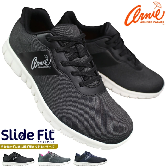 アーニーアーノルドパーマー AN2201 ブラック グレー ネイビー 22.5cm〜25cm ハンズフリー スライドフィット Arnie ARNOLD PALMER 手を使わずに履ける靴 屈まずに履ける靴 脱ぎ履きしやすい靴