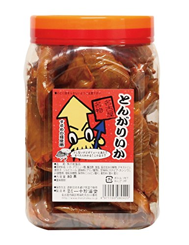 商品紹介 少し堅いけどボリューム満点! ! 食べたらわかる! この旨さ! ! 名古屋名物とんがりいかです。 1つの容器に甘辛く煮付けたイカの駄菓子が80本入っております。 皆様は昔本品をよく駄菓子屋さんに小銭を持って買われたのではないでしょうか。 今となっては駄菓子屋さんも少なくなっておりますが、今も昔も変わらぬ味わいを継承し続けている「一十珍海堂」の商品です。 ご家庭や職場に一箱置いておくだけできっといつの間にかなくなってしまうそんな商品だと私たちは考えております ご注意(免責)>必ずお読みください 直射日光を避け常温で保存してください。