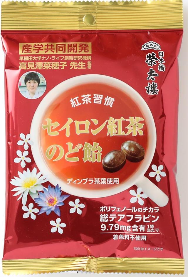 説明 商品紹介 紅茶の機能性について研究されている早稲田大学ナノ・ライフ創新研究機構の高見澤菜穂子先生と出会い、榮太樓の伝統製法で紅茶本来の美味しさを活かしつつ、紅茶が持つチカラも兼ね備えたのど飴ができました。 原材料・成分 水飴(国内製造)、グラニュー糖、紅茶/L-メントール