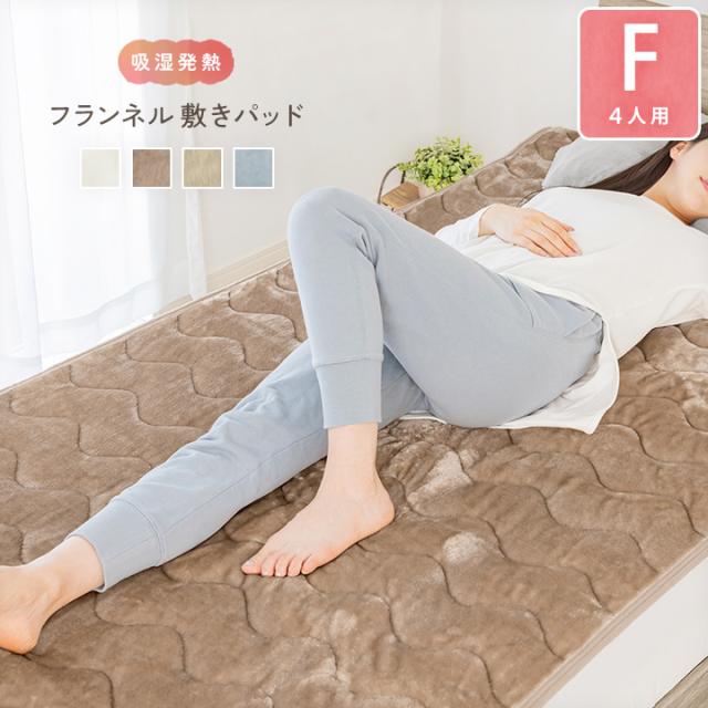 敷きパッド ファミリーサイズ 240 暖かい あったか フランネル 吸湿発熱綿入り なめらか 洗える 滑り止め ウォッシャブル 四隅ゴム 24A009