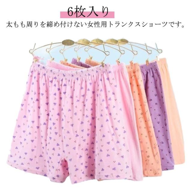 コットン トランクスショーツ 6枚入り 下着 女性用 トランクス パンツ 花柄 可愛い 深ばき ハイウエスト 綿 コットン ボックスショーツ トランクスショーツ ショーツ おやすみパンツ ボクサーパンツ ゆったり らくちん アンダーウェア 婦人 ママ 母の日 ギフト プレゼント