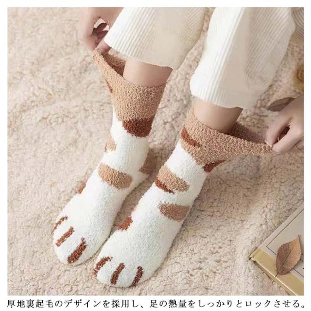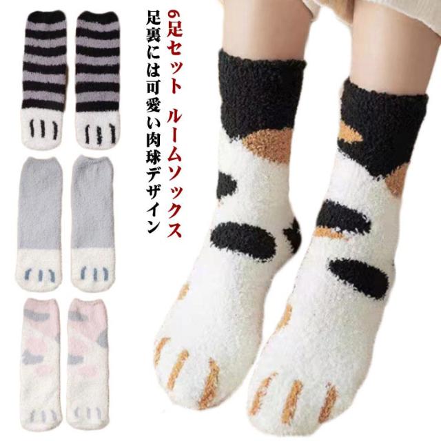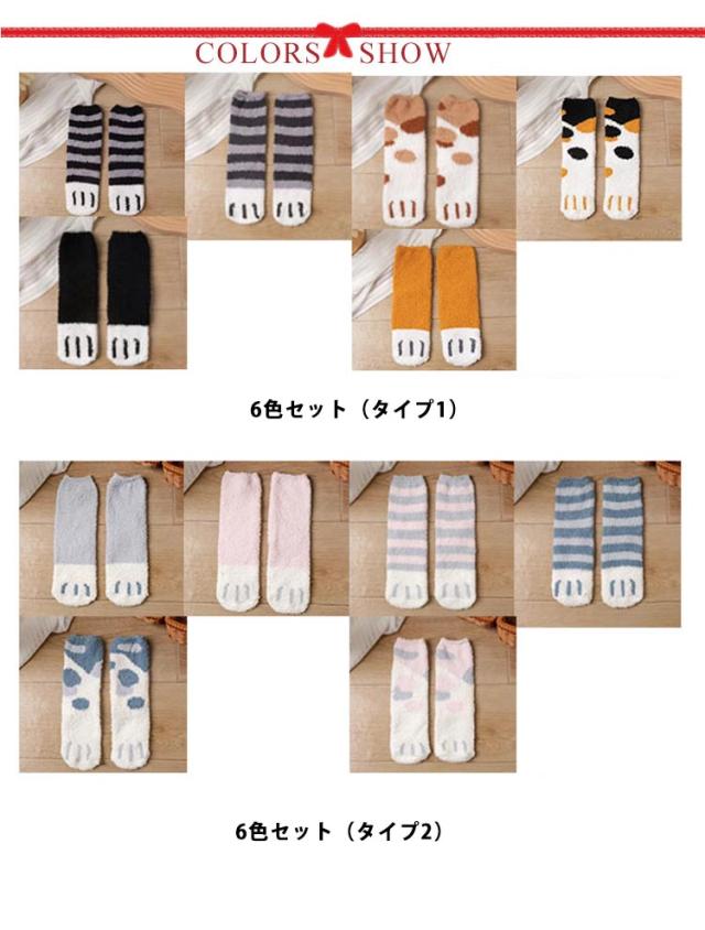 6足セット 靴下 ねこ 猫柄 ルームソックス ソックス かわいい もこもこ ふわふわ あったか 暖かい 厚手 ネコちゃんデザイン レディース にゃんこ 冬 アニマル柄 プレゼント ギフト