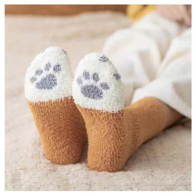 | 6足セット ルームソックス 足裏には可愛い肉球デザイン 伸縮性にも優れ、フィット感で快適な着け心地です。 厚地裏起毛のデザインを採用し、足の熱量をしっかりとロックさせる。 | |