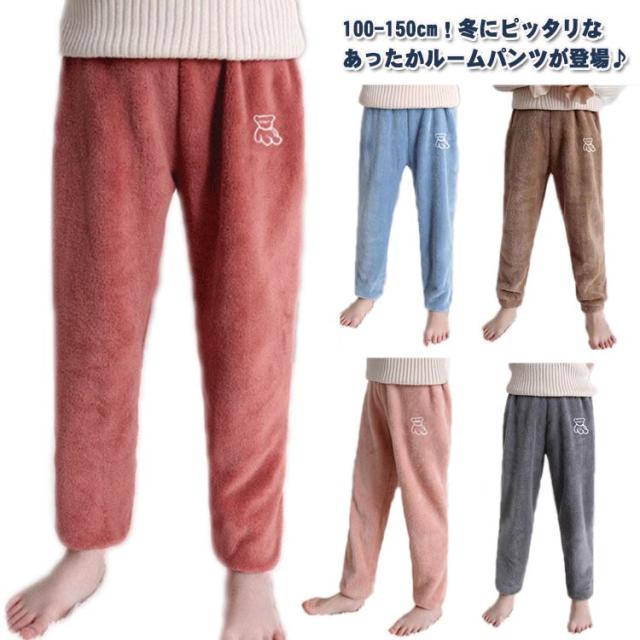 キッズ もこもこ もこもこ ルームウェア ルームパンツ もこもこパンツ ボアパンツ キッズ ジュニア パンツ 男の子 ロングパンツ 子供服 暖かい ふわふわ 長ズボン パジャマ 寒さ対策 防寒 無地 女の子 部屋着 寝巻き 裏起毛 冬物 ボトムズ 送料無料 100 110 120 130 140