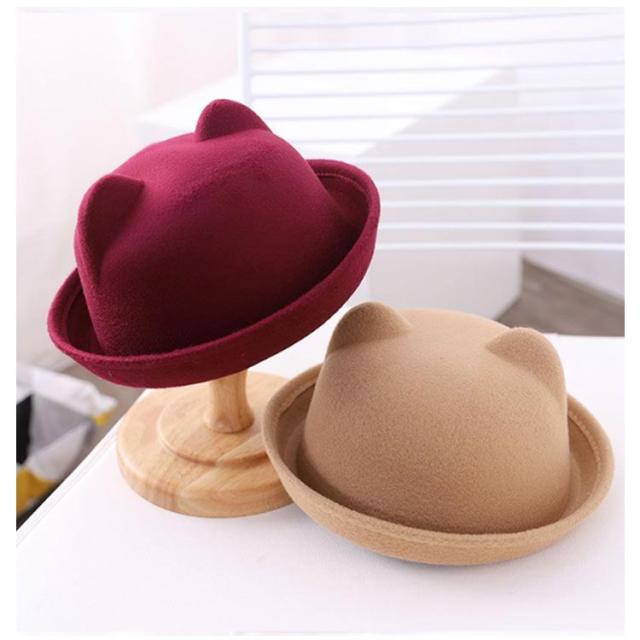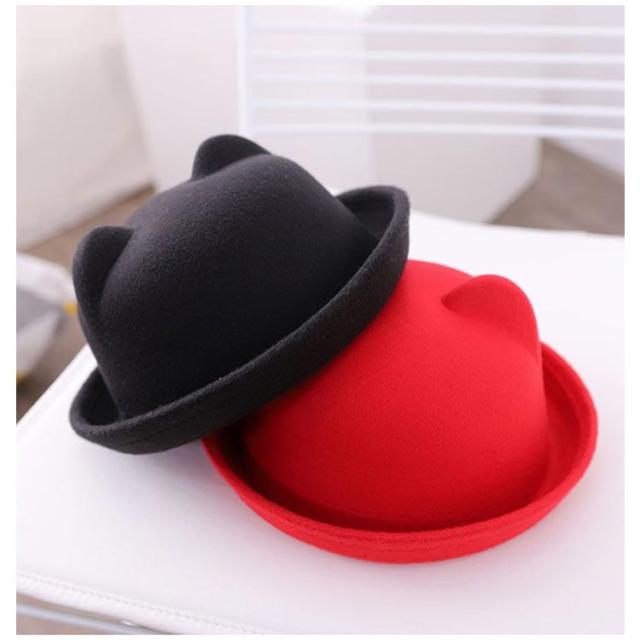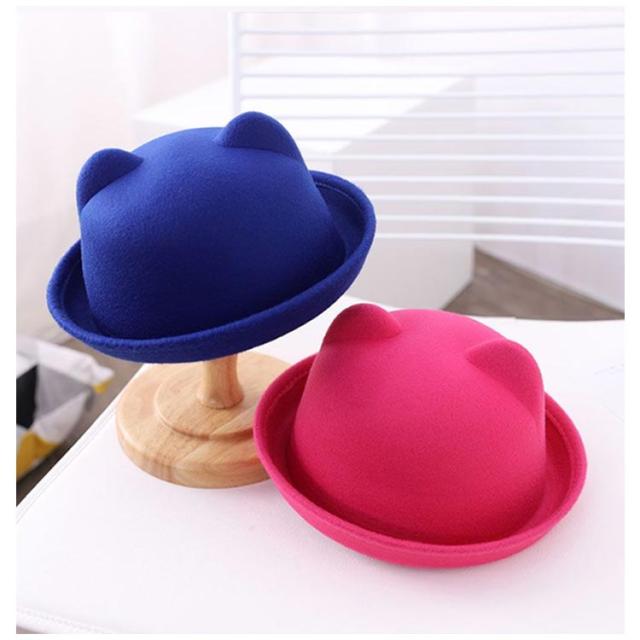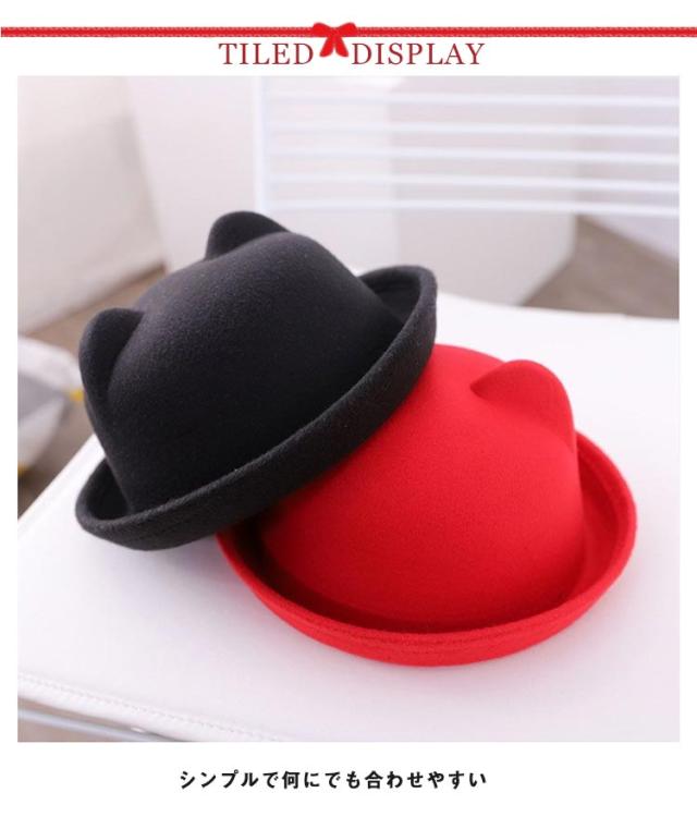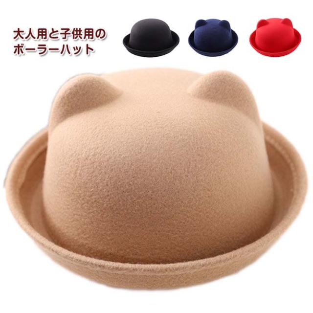 猫耳 親子帽子 子供用 ネコ耳 シンプル キッズハット 親子コーデ メンズ ボーラーハット 大人 子供 フェルトハット 帽子 ネコ耳 無地 レディース 帽子 ぼうし レディースハット 女の子 フェルト帽 つば付きハット 男の子