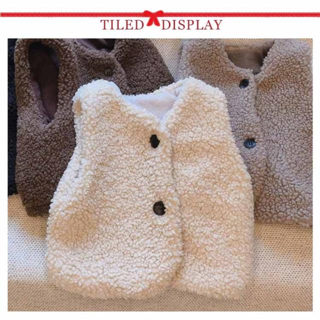 | 70-120cm!見た目も着心地も暖かキュートなボアベスト。 思わず触れたくなるふわふわ柔らかい生地、裏側はフリースで、防寒にも◎ 軽くて使いやすい秋冬の定番ボアアイテム、通学・通園にも大活躍。 シンプルなデザインながら、ソフトでボリューミーなボアが高級感を演出! | |