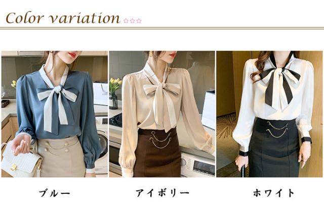 | オフィスにも普段使いもできる、シンプルなデザインのブラウス! リボン×バルーン袖で上品な印象を与えてくれます。 魅力を発揮してくれる、オフェスにもおすすめシンプルデザインです! 女性らしいアイテムに合わせれば上品な着こなしが叶います。 合わせるアイテム次第でカジュアルにもコーデできる万能アイテムです! バイカラーデザインがエレガントなブラウス。 さらっとした肌触りが良く、着心地の良い素材で季節の変わり目にあると便利なアイテムです。 ジャケットのインナーとしてちらっと見せて着るのもおすすめです。 | |
