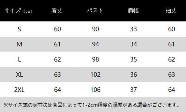 | サイズ | S M L XL 2XL |