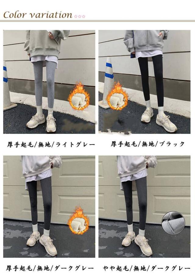 | 寒い季節のお出かけに一枚は欲しい裏起毛のあったかレギパン 柔らかい素材だからチクチク感が少なくて履き心地GOOD。 ウエストゴムで伸縮性もあるので部屋着としても活躍します。 シンプルなデザイン、毎日のコーディネートにピッタリ! 選べる厚み、ロングシーズンで大活躍します。 フィット感のよい十分丈のレギンス、寒い季節に大活躍! | |