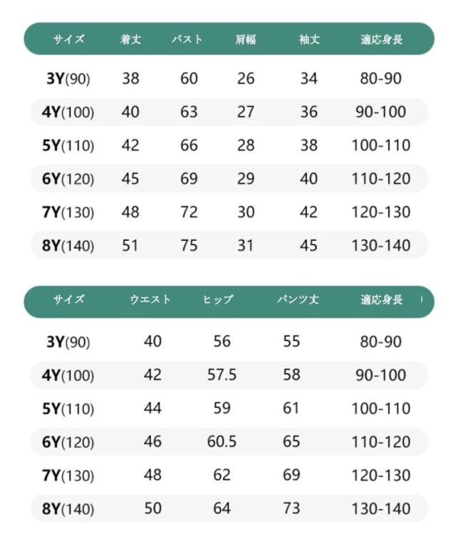 | サイズ | 90cm(3Y) 100cm(4Y) 110cm(5Y) 120cm(6Y) 130cm(7Y) 140cm(8Y) |