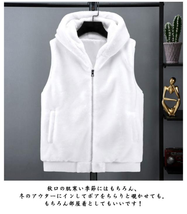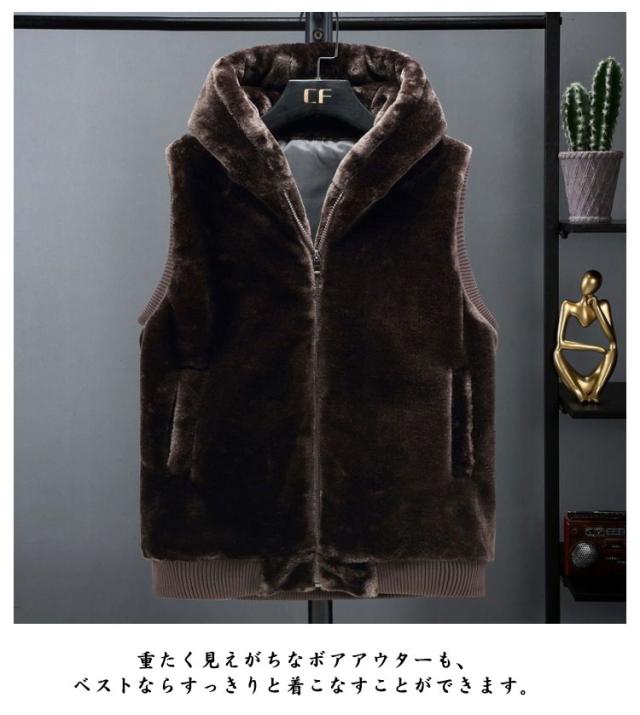 ボアジャケット ノースリーブ ボアベスト ファーベスト 秋冬 フリースベスト 重ね着 フード付き フリース メンズ あったか スタンドネック 大きいサイズ ボア フリース アウター スタンドカラー 防寒 暖かい 立ち襟 もこもこ