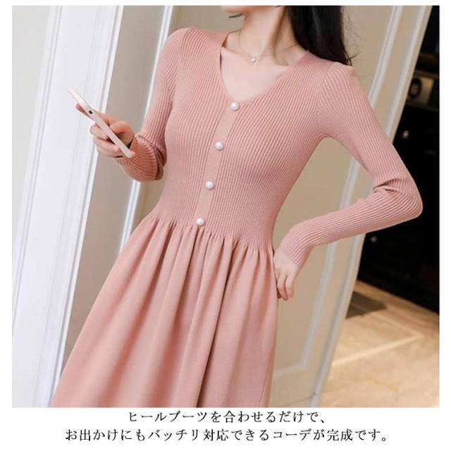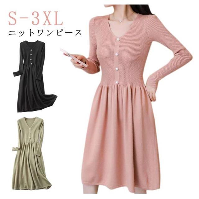 大人 フレアワンピース ニット 秋冬 ニットワンピース 長袖 きれいめ Vネック タイト Aライン フレア きれいめ タイトワンピース 黒 春 ワンピース ロングニット 大人 フェミニン キャメル オフホワイト ブラック ニットワンピース 秋