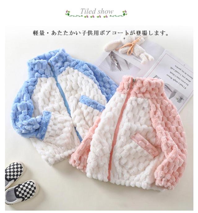 | 暖かい子供用ボアジャケット。 軽量・あたたかい子供用ボアコートが登場します。 お肌に優しい生地を使用、柔らかくて小さいお子様でも安心に着用できます。 デイリー使いに着まわしやすく寒さ対策にもぴったりなアイテムです。 | |
