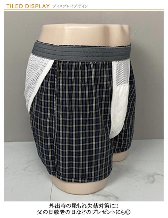| 失禁パンツ・尿漏れパンツ トランクス男性用 外出時の尿もれ 失禁対策に!! 父の日 敬老の日 などのプレゼントにも◎ | |