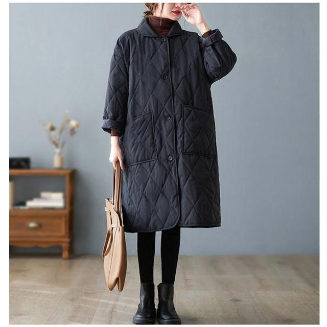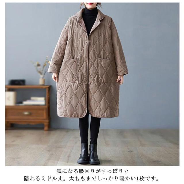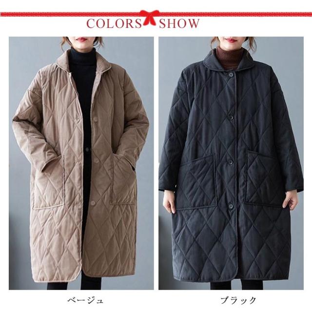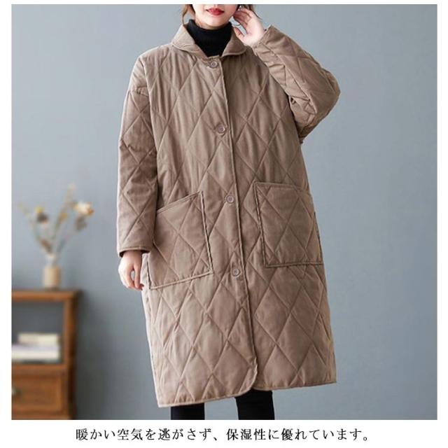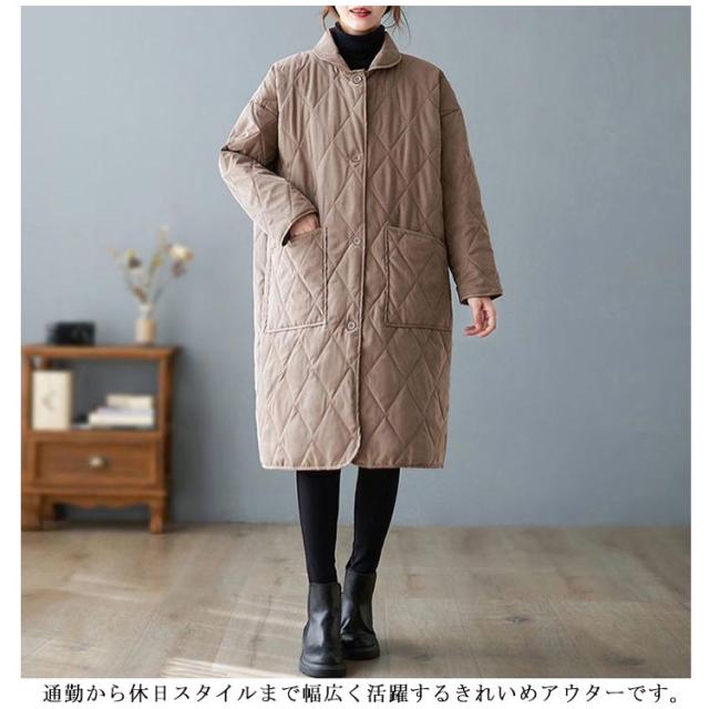 ブルゾン レディース アウター キルティングコート 中綿コート ロング カジュアル 中綿ジャンパー 暖かい 防寒 大きいサイズ キルティング 防寒コート キルティングコート コート 軽い ゆったり 無地 ジャケット 黒 冬 秋冬 春 ポケット付き 軽量
