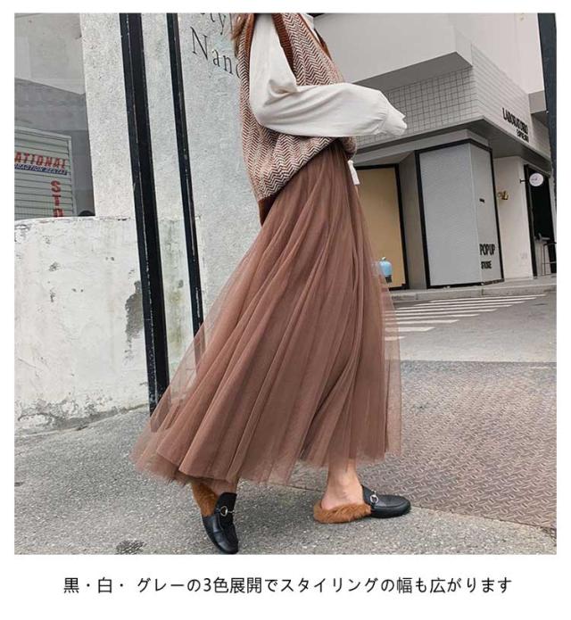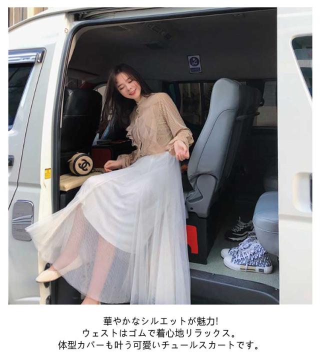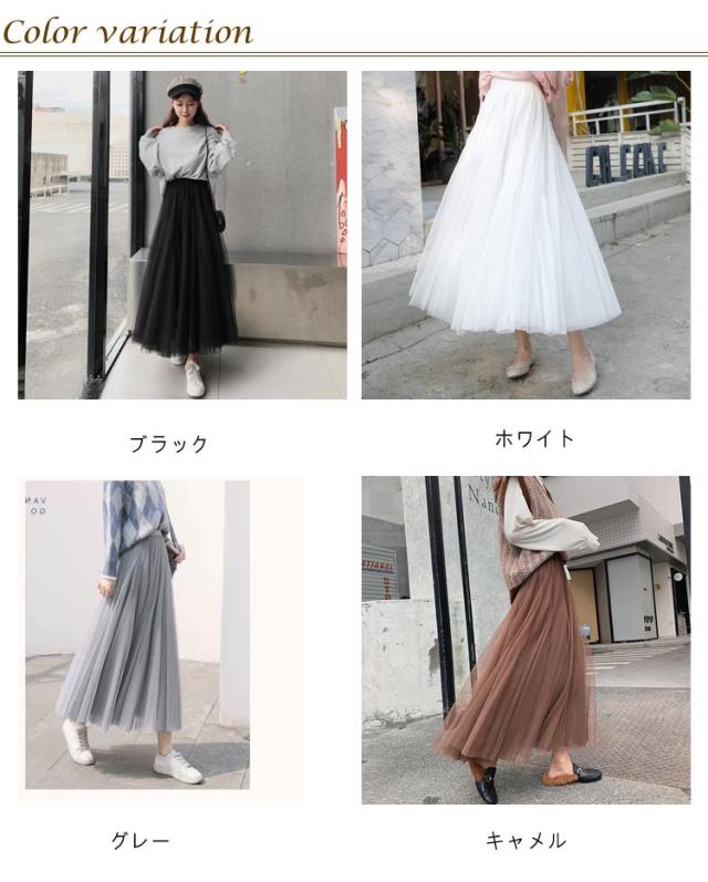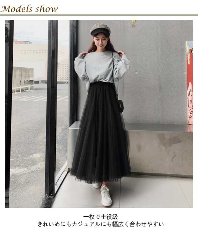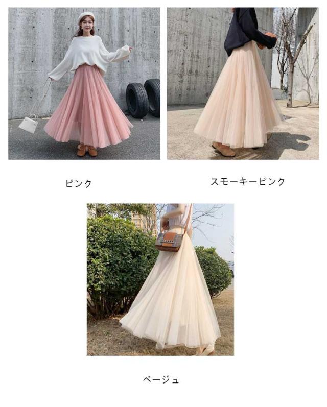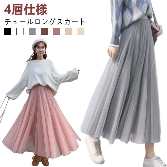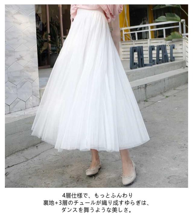 ロング ロングスカート チュールスカート フレア 4層 スカート 4層 マキシ丈 フレアチュールスカート チュチュスカート チュールスカート ウエストゴム レディース ロング丈 裏地付き Aライン 無地