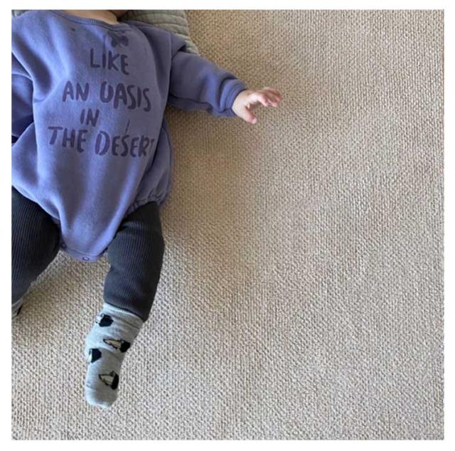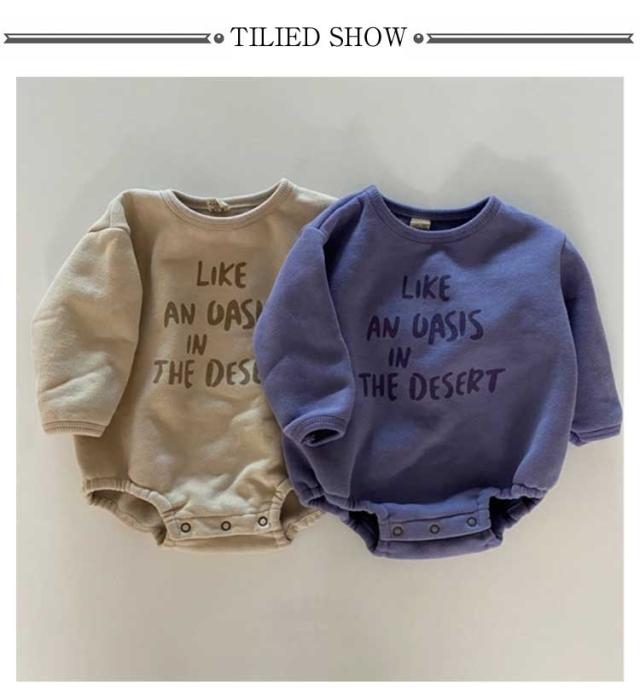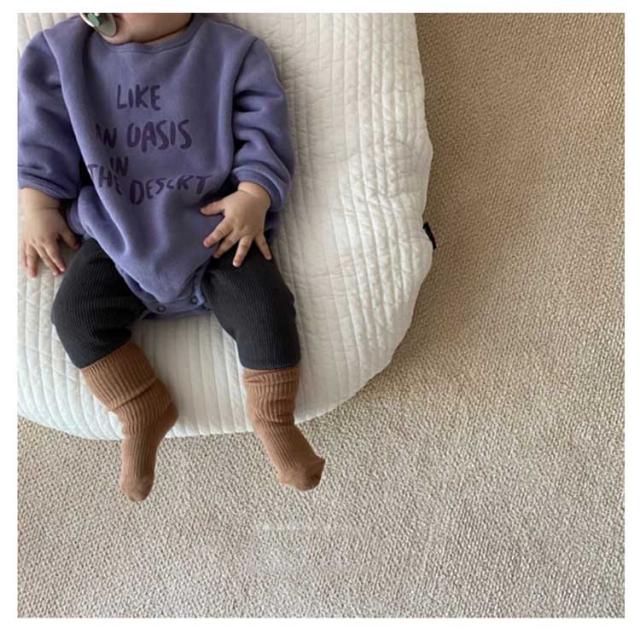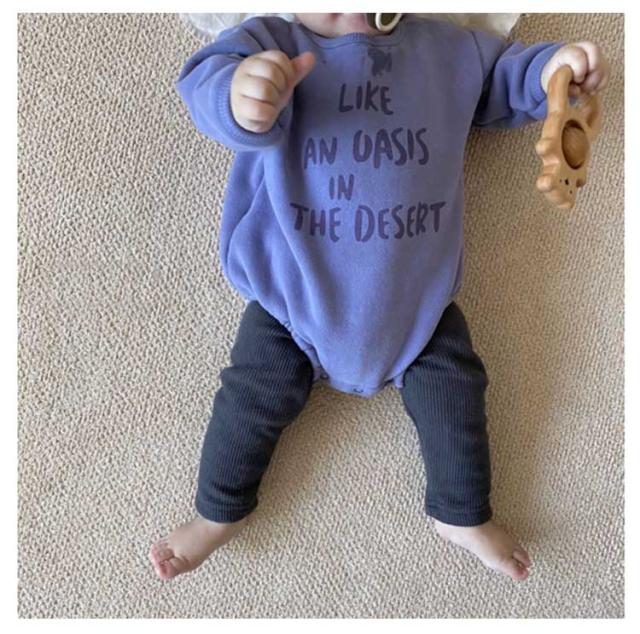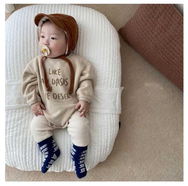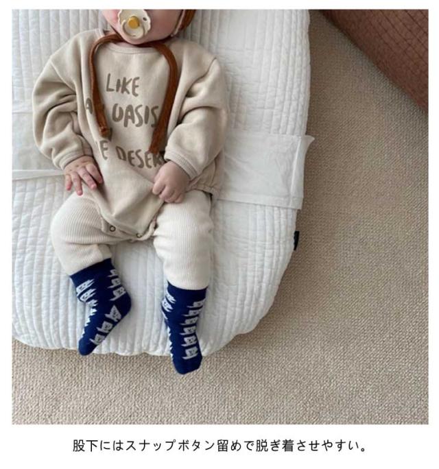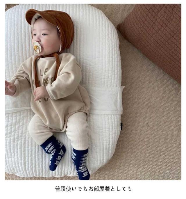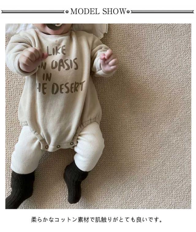 | 【あったか可愛いベビーロンパース】 柔らかなコットン素材で肌触りがとても良いです。 股下にはスナップボタン留めで脱ぎ着させやすい。 普段使いでもお部屋着としても◎ | |