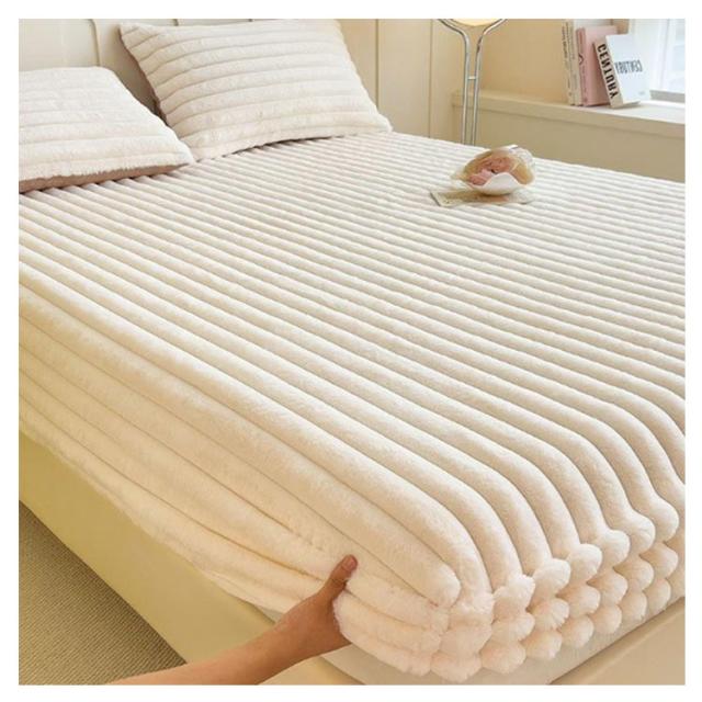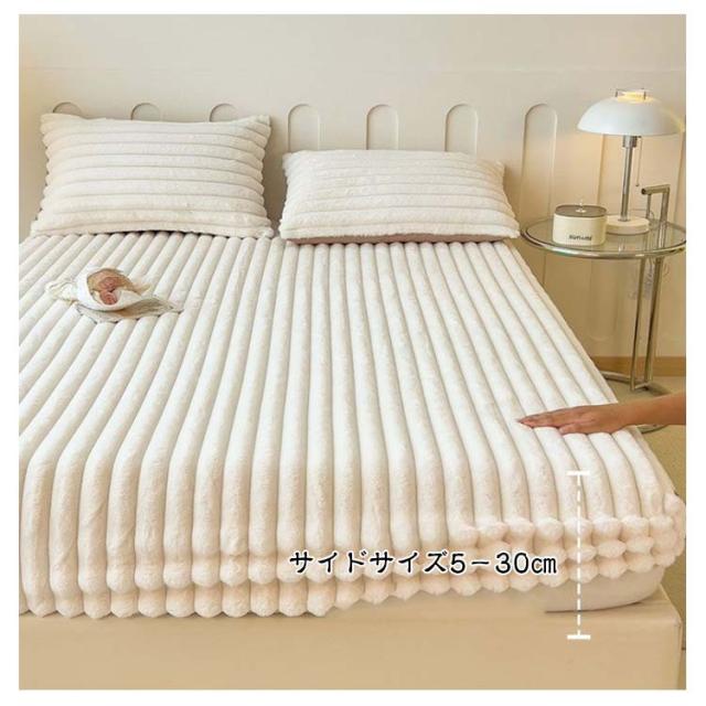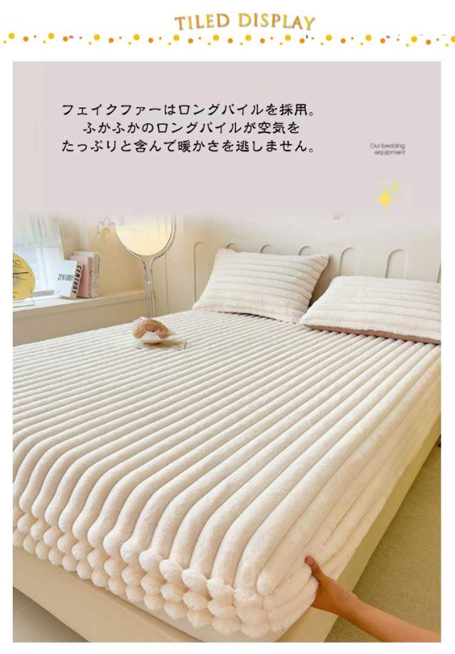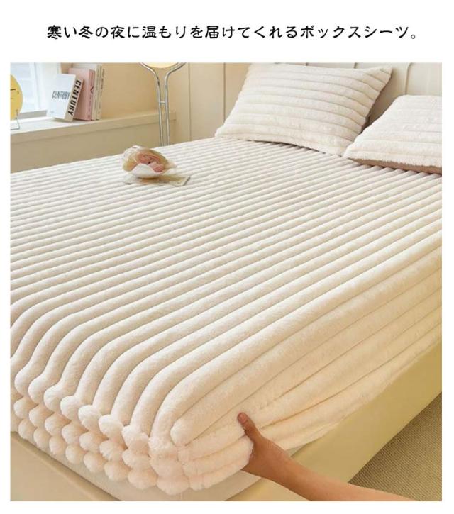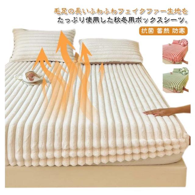 秋冬用 ボックスシーツ もこもこ ふわふわ ファー ベッドシーツ BOXシーツ 暖かい あったか パイル シングル セミダブル ダブル ベッドカバー マットレスカバー 起毛 毛足長い ストライプ柄 無地 北欧 おしゃれ 発熱 抗菌 蓄熱 防寒 保温 洗える 【送料無料】