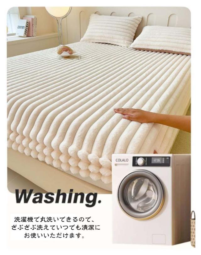 | 毛足の長いふわふわフェイクファー生地をたっぷり使用した秋冬用ボックスシーツ。 フェイクファーはロングパイルを採用。ふかふかのロングパイルが空気をたっぷりと含んで暖かさを逃しません。 寒い冬の夜に温もりを届けてくれるボックスシーツ。 シーツ全周にぐるりとゴムが入っているから、マットレスに被せるだけで 取り付け簡単ズレにくい! 洗濯機で丸洗いできるので、ざぶざぶ洗えていつでも清潔にお使いいただけます。 | |