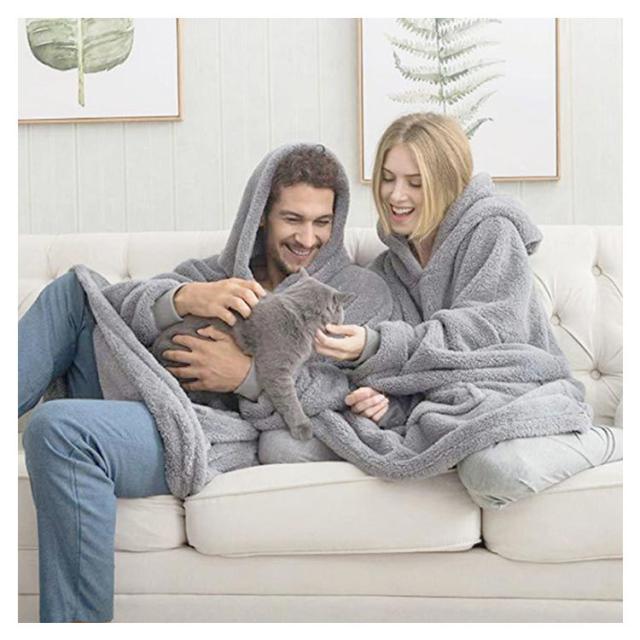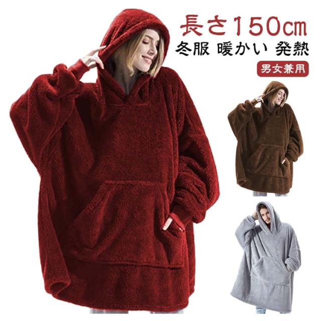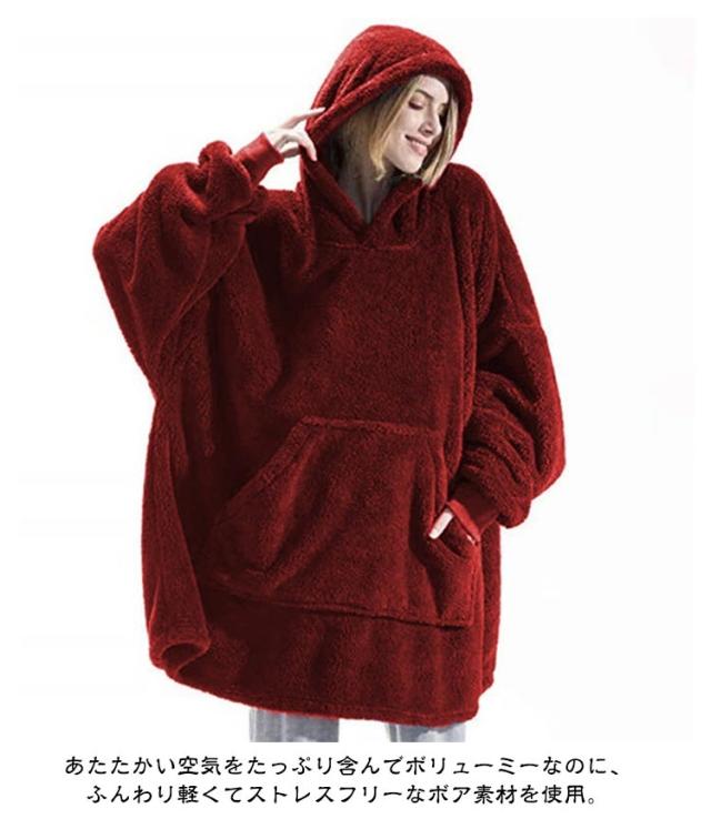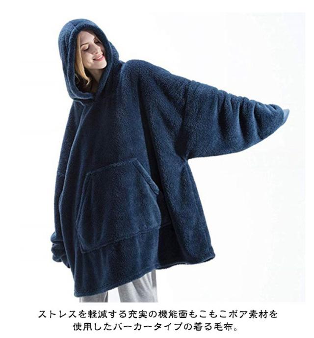 厚手 着る毛布 パーカー ロングパーカー リブ袖 秋冬 ルームウェア ボア モコモコ 着るブランケット レディース メンズ 長袖 パジャマ 部屋着 冬服 暖かい あったか 発熱 防寒 保温 ポケット付き フード付き オーバーサイズ ビッグシルエット 軽量 洗える 【送無】