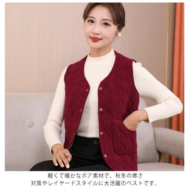 レディース 前開きベスト 秋冬 ベスト ボアベスト 防寒 保温性トップス シニア ースリーブ もちもち 肌触りやわらか あったか 母親 アウター シニアファッション シニアファッション 祖母 おばあちゃん 60代 70代 80代 90代 母の日 敬老の日