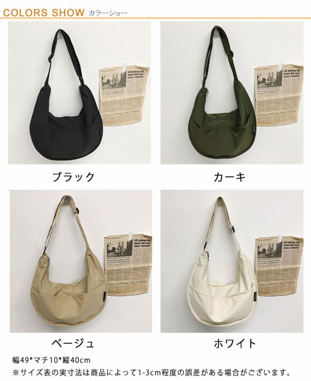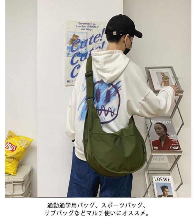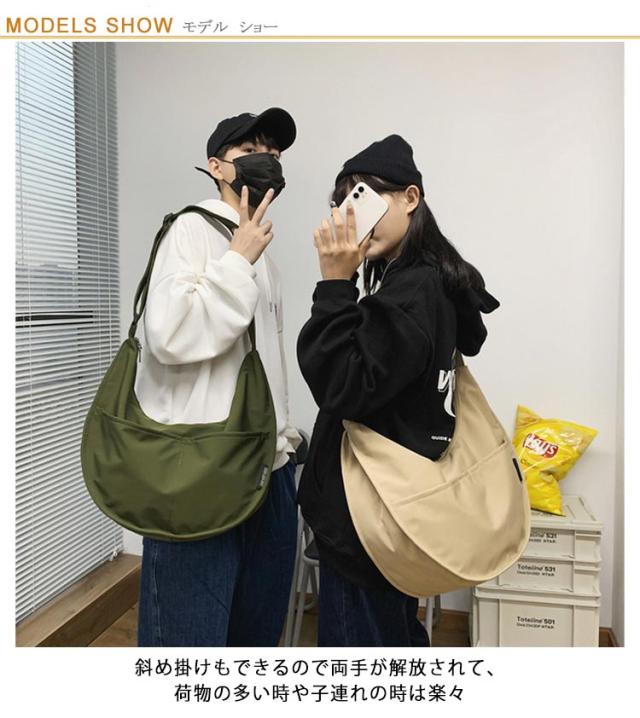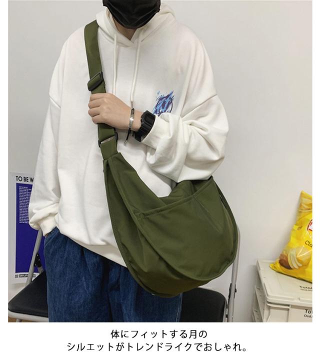 バッグ レディース ナイロン 斜め掛けバッグ 鞄 ナイロン ハーフムーン型 メンズ 大容量 大きめ 撥水 肩掛け バッグ 軽量 通学 通勤 大人 マザーバッグ マチ広 バナナショルダー カジュアル ボディバッグ