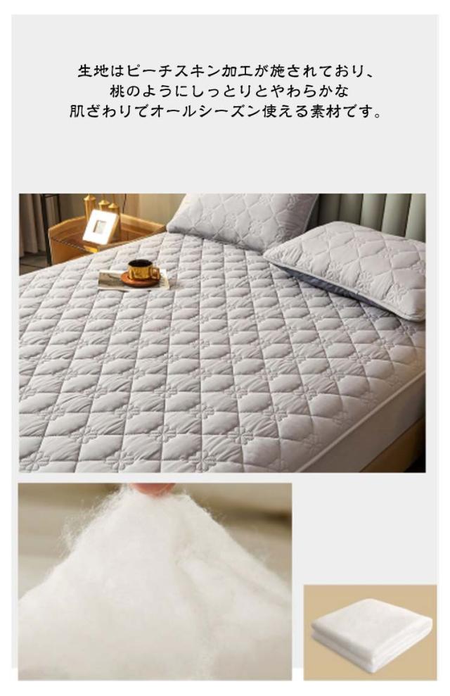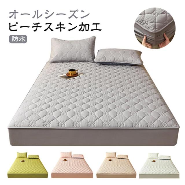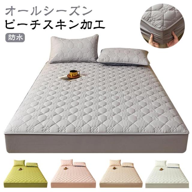 | ベッドパッドとボックスシーツが合体したパッド一体型ボックスシーツ。【防水】【ピーチスキン加工】【オールシーズン】 敷きパッドとシーツが一体になっているから取り付けラクラク、これ一枚でOK!取り外して洗って干して...という面倒な洗濯の時間も短縮できます。 生地はピーチスキン加工が施されており、桃のようにしっとりとやわらかな肌ざわりでオールシーズン使える素材です。 シーツ全周にぐるりとゴムが入っているから、マットレスに被せるだけで 取り付け簡単ズレにくい! 日頃の使いやすさも大切だから、お洗濯のしやすいちょうどいい厚みのほどよいクッション性を目指しました。 洗濯機で丸洗いできるので、ざぶざぶ洗えていつでも清潔にお使いいただけます。 | |