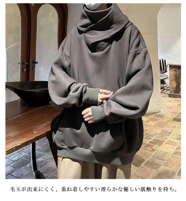 裏起毛 男女兼用 メンズ レディース 春 スウェット オーバーサイズ 保温 フード付きパーカー 防寒 秋 冬 ハイネックパーカー ハイネック スエット ボリュームネックパーカー タートルネック 男女兼用 無地 ゆったり ストリート系 ヒップホップ お兄系 個性的 モード系