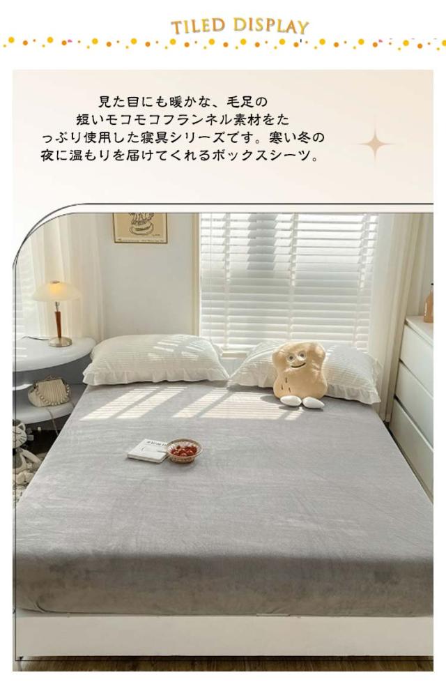 | モコモコフランネル素材に包まれるBOXシーツ。【2枚セット】 見た目にも暖かな、毛足の短いモコモコフランネル素材をたっぷり使用した寝具シリーズです。寒い冬の夜に温もりを届けてくれるボックスシーツ。 シーツ全周にぐるりとゴムが入っているから、マットレスに被せるだけで 取り付け簡単ズレにくい! 洗濯機で丸洗いできるので、ざぶざぶ洗えていつでも清潔にお使いいただけます。 | |