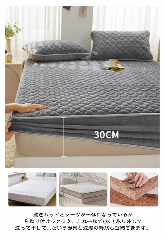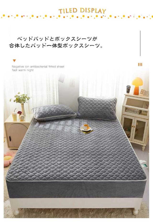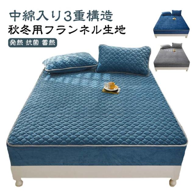 ボックスシーツ あったか ベッドカバー 中綿入り シングル フランネル BOXシーツ 敷きパッド一体型 セミダブル ベッドシーツ 暖かい マットレスカバー ダブル 起毛 もこもこ 秋冬用 パッド一体型 キルト キルティング 発熱 抗菌 蓄熱 保温 洗える