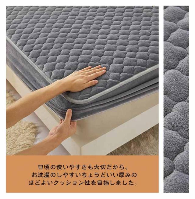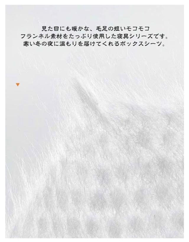| ベッドパッドとボックスシーツが合体したパッド一体型ボックスシーツ。【秋冬用フランネル生地】【中綿入り3重構造】 敷きパッドとシーツが一体になっているから取り付けラクラク、これ一枚でOK!取り外して洗って干して...という面倒な洗濯の時間も短縮できます。 見た目にも暖かな、毛足の短いモコモコフランネル素材をたっぷり使用した寝具シリーズです。寒い冬の夜に温もりを届けてくれるボックスシーツ。 シーツ全周にぐるりとゴムが入っているから、マットレスに被せるだけで 取り付け簡単ズレにくい! 日頃の使いやすさも大切だから、お洗濯のしやすいちょうどいい厚みのほどよいクッション性を目指しました。 洗濯機で丸洗いできるので、ざぶざぶ洗えていつでも清潔にお使いいただけます。 | |