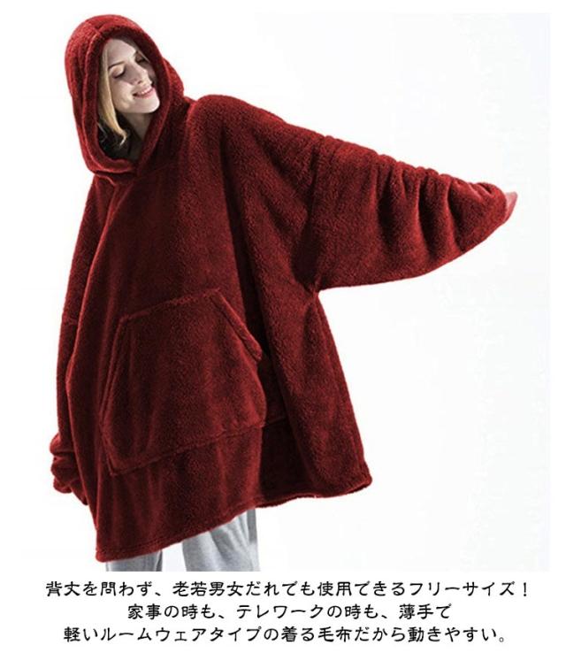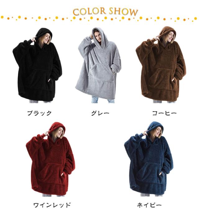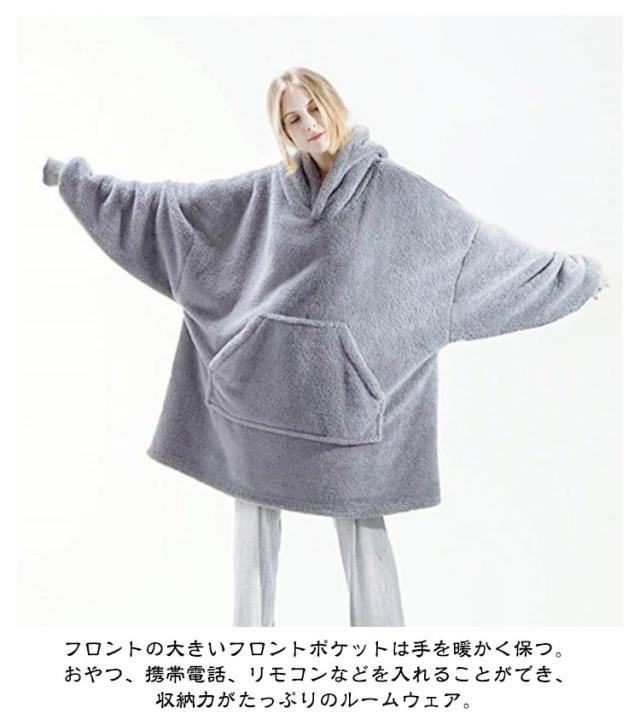 厚手 着る毛布 パーカー ロングパーカー リブ袖 秋冬 ルームウェア ボア モコモコ 着るブランケット レディース メンズ 長袖 パジャマ 部屋着 冬服 暖かい あったか 発熱 防寒 保温 ポケット付き フード付き オーバーサイズ ビッグシルエット 軽量 洗える 【送無】