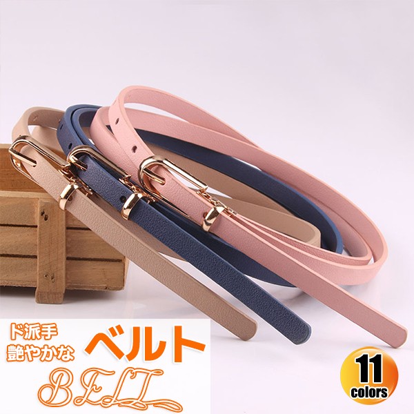 ド派手ベルト レディース 1cm幅 合金バックル 細ベルト 脚長効果 長さ調整可能 艶やかな11カラー かわいい ウエストマーク おしゃれ 高見え 細め 大きいサイズ 細見え シンプル ナチュラル ds035q3cy ds035q3