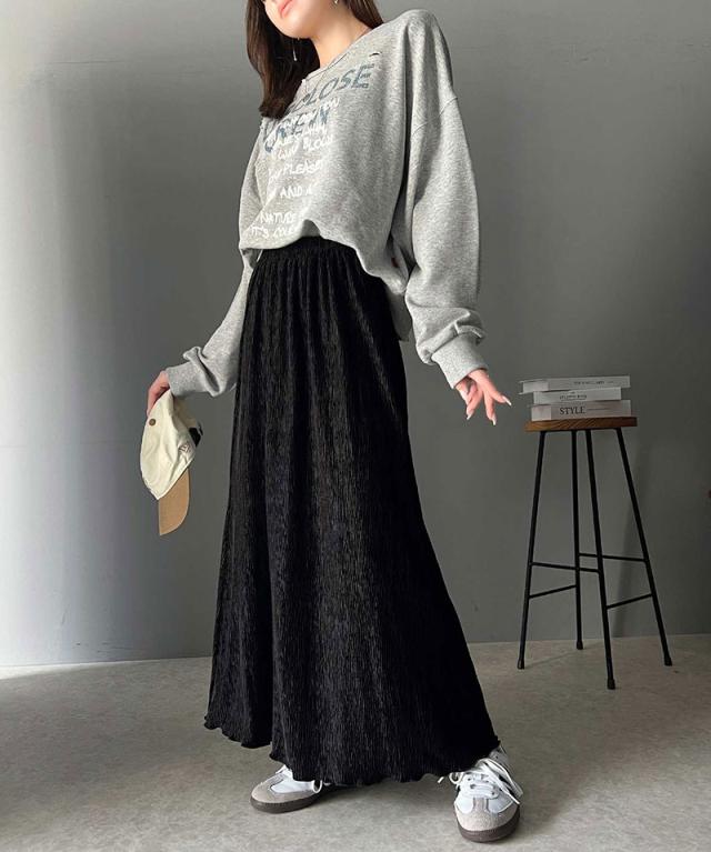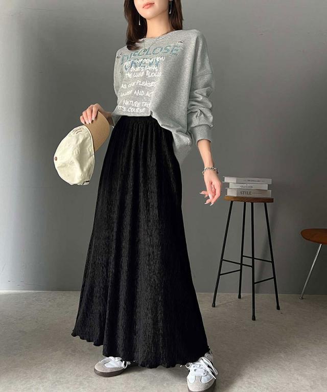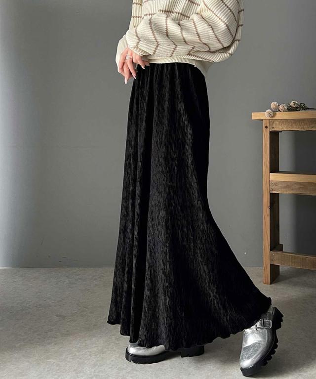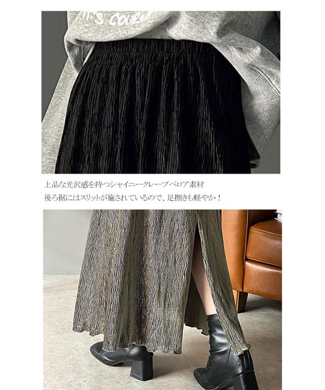 クラシカルエルフ秋新作 ボトムス スカート レディース シャイニー 楊柳 シャイニー クレープ ベロア 素材 ナロー SK 光沢感 バック スリット ウエスト ゴム 仕様 スタイルアップ 高見え 大きいサイズ 2024aw ce1070129