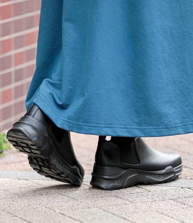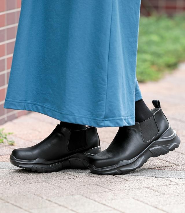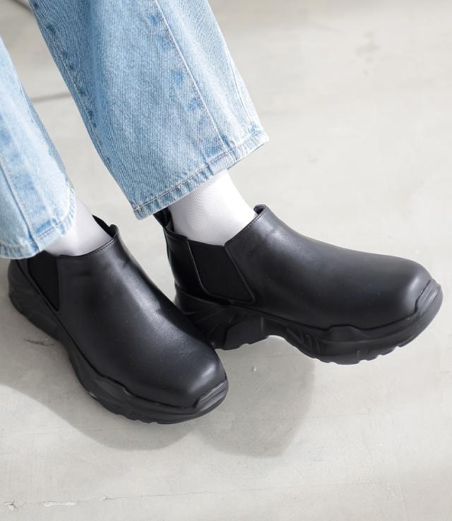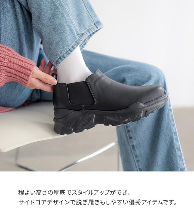 『サイドゴアアンクルブーツ』【メール便不可】【70】[アンクルブーツ レディース 靴 くつ シューズ ショートブーツ スニーカーソール ボリューム 厚底 サイドゴアブーツ スタイルアップ 合成皮革 脱ぎ履きしやすい]