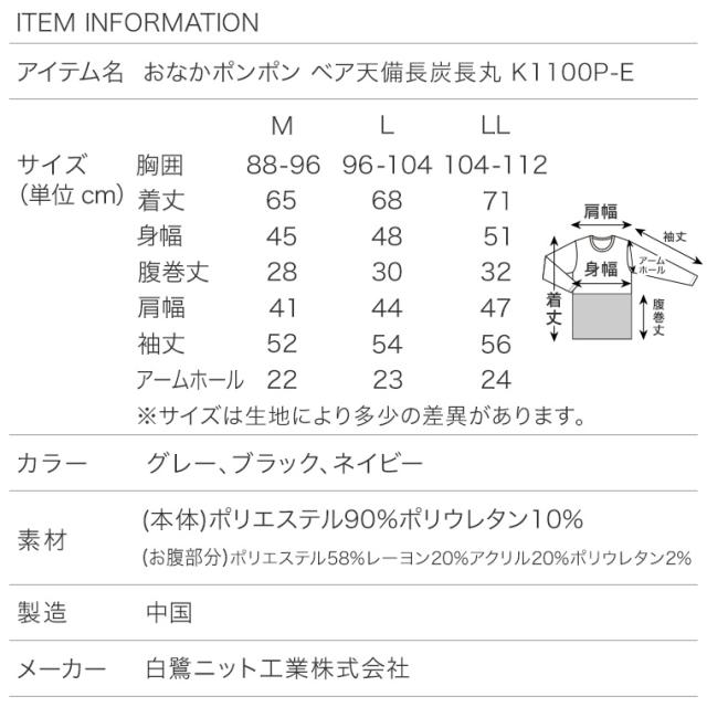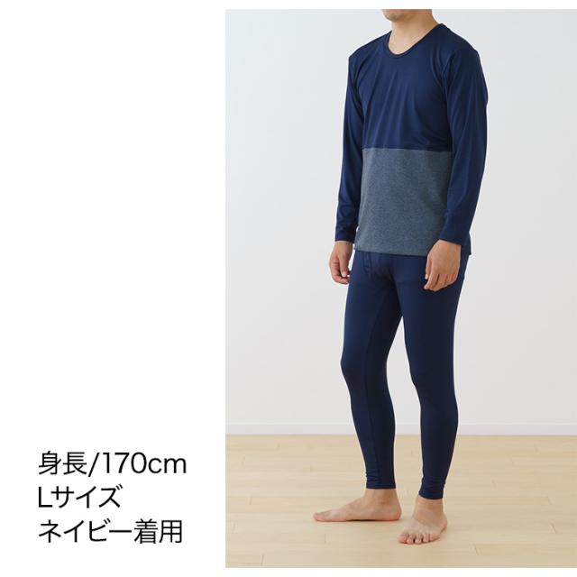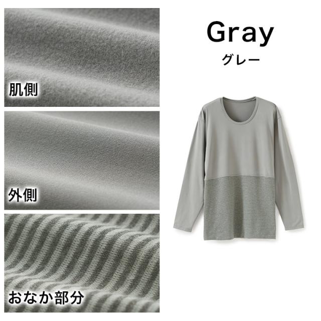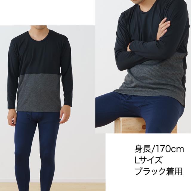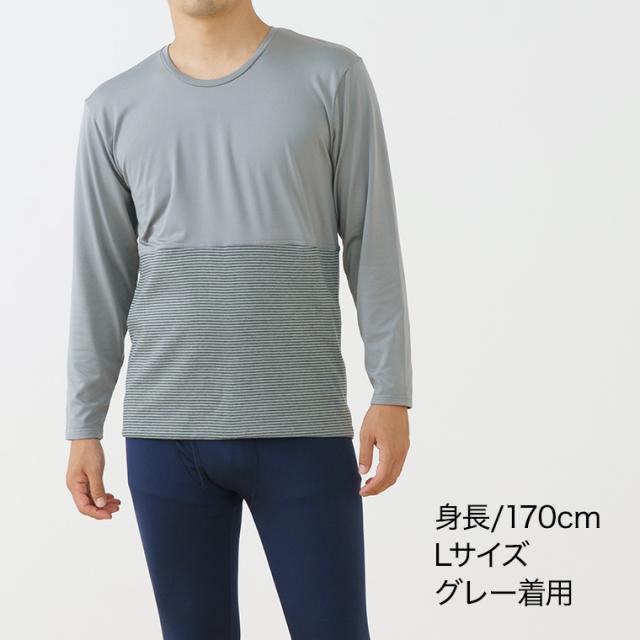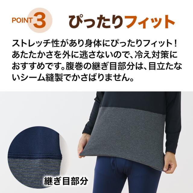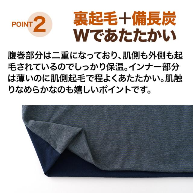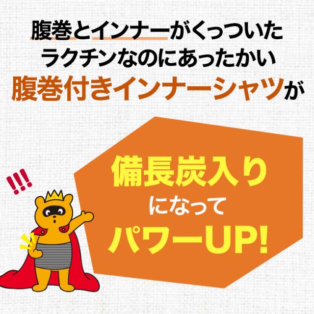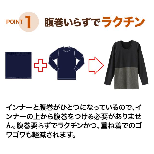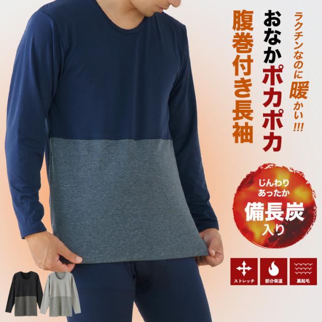 腹巻付きインナー 長袖 丸首 備長炭繊維入り 裏起毛 メンズ 秋冬 インナー はらまき 暖かい保温 防寒 ストレッチ 男性 紳士 下着 肌着 K1100P-E