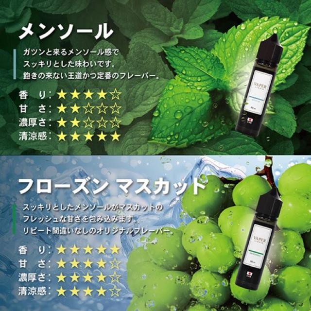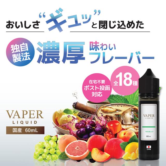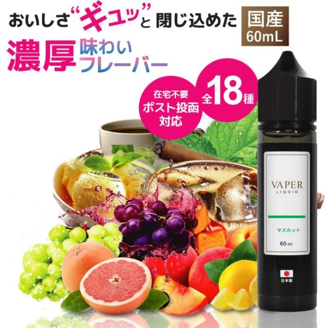 VAPER LIQUID ベイパーリキッド 60ml 電子タバコ リキッド ベイプ VAPE 日本製 マスカット メンソール 国産 禁煙 タバコ ニコチン0 ノンタール
